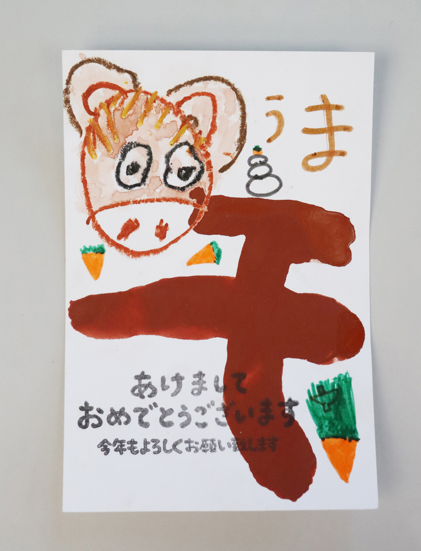 子ども達が一生懸命作った年賀状をこちらでご紹介させて頂きます。〜もも組〜〜年少組〜〜年中組〜〜年長組〜